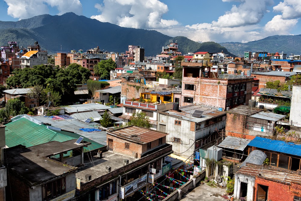 | We ate lunch at a roof top restaurant close to our hotel. Many of the older buildings in Nepal have six foot ceiling heights. Historically Nepali people weren't very tall. |