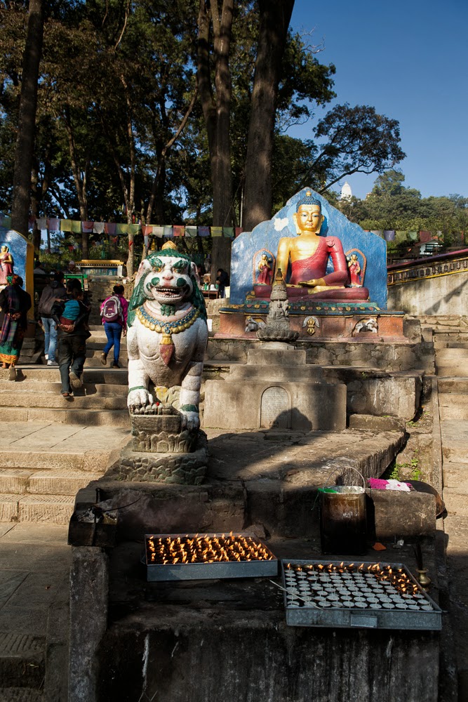 | Our photo tour officially began at dinner the first night. But picture taking started at sunrise the next day. At 5:30 am we headed to Swayambunath. |